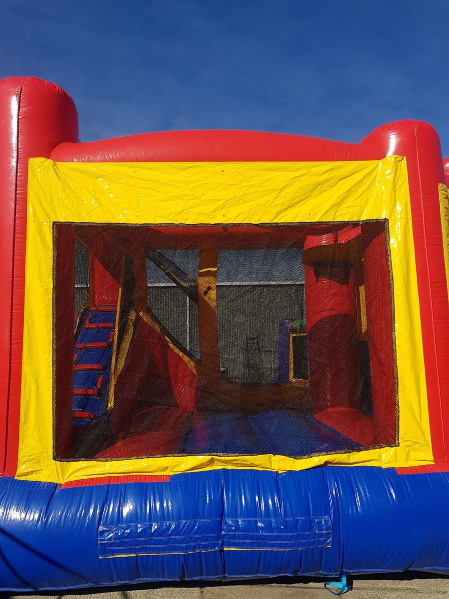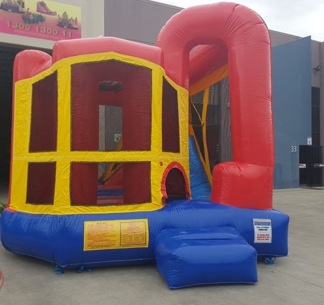 This awesome combo Bouncer features a good size bounce area, ball hoop, rock climb stairs and slide all neatly set out in the one unit.