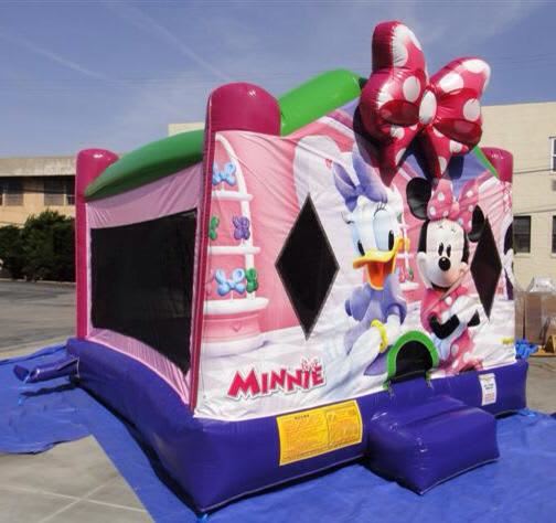 This genuine US castle is of the highest quality: featuring all digital graphics, bright shiny 15oz vinyl, big bounce area, wet/dry slide, climb and basketball ring it is an absolute must for minnie mouse kids parties in Perth.