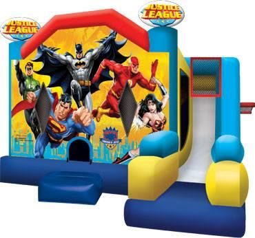 Our brand spanking new Justice League 7in1 combo is an absolute winner for kids parties! This genuine US castle features bright and shiny vinyl and digital graphics which look spectacular in any backyard! 7in1 Combos feature big bounce area, squeeze wall, obstacles, two basketball rings, climb and large slide as well as a unique layout which breaks the kids up from all being inside.