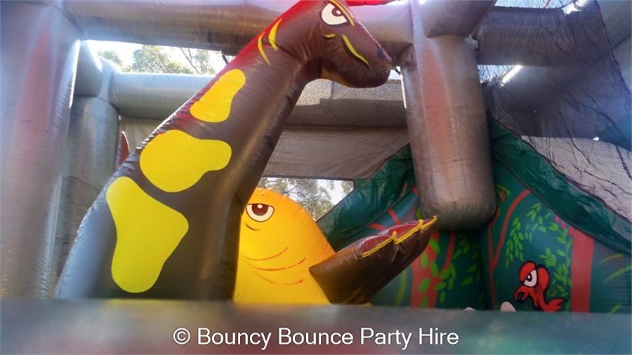 There is a rock climbing slide, dinosaur obstacles to interact with, and a bounce area. It is fully enclosed, and offers sun and rain protection. This castle is suitable for work parties, birthdays, functions and corporate events.